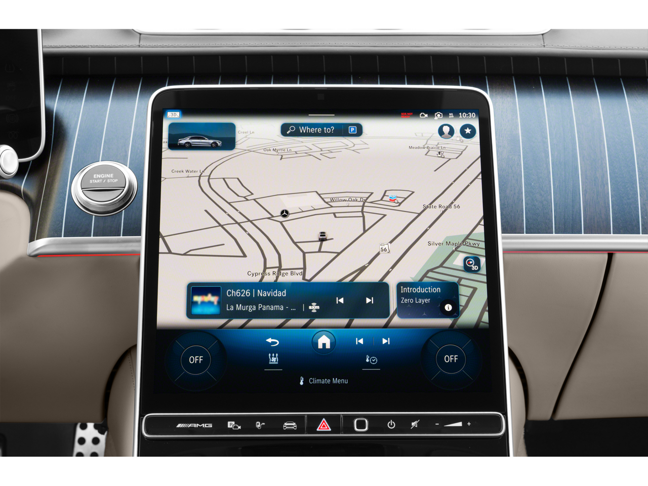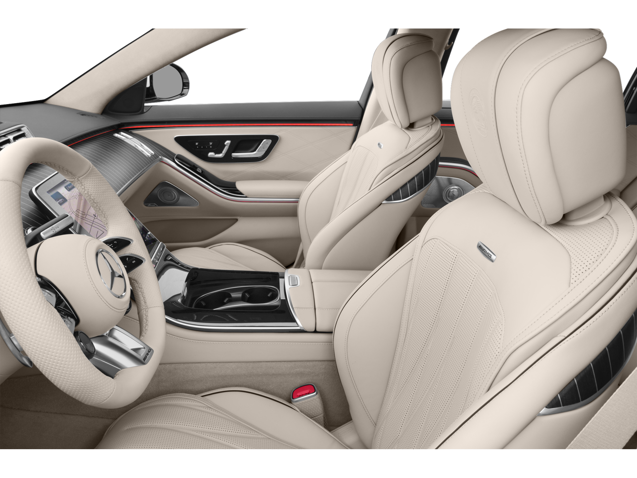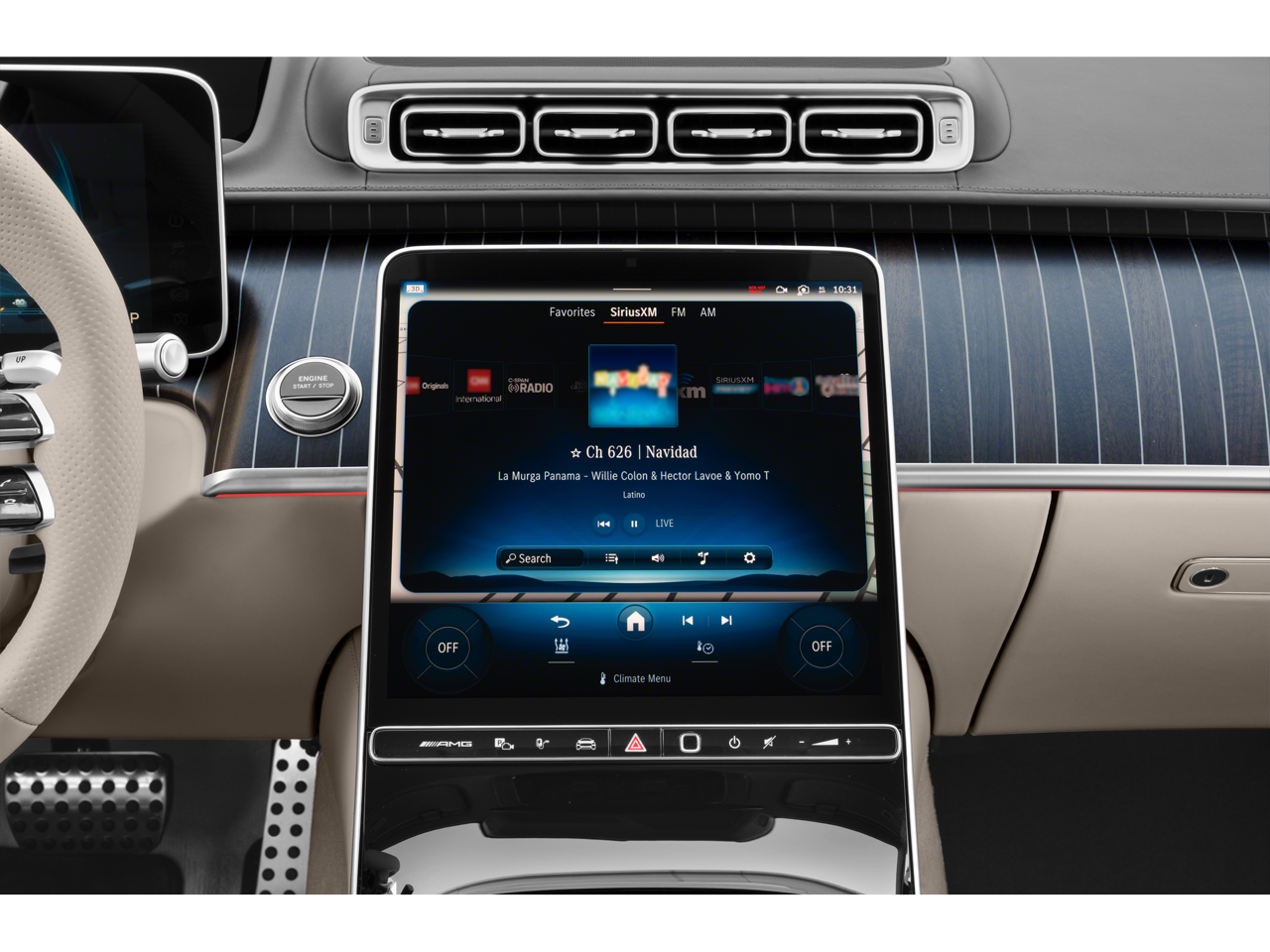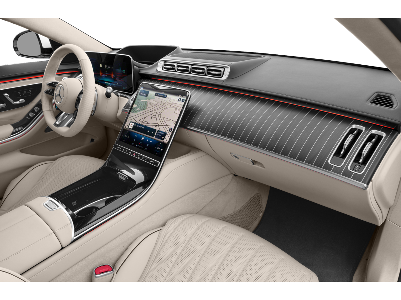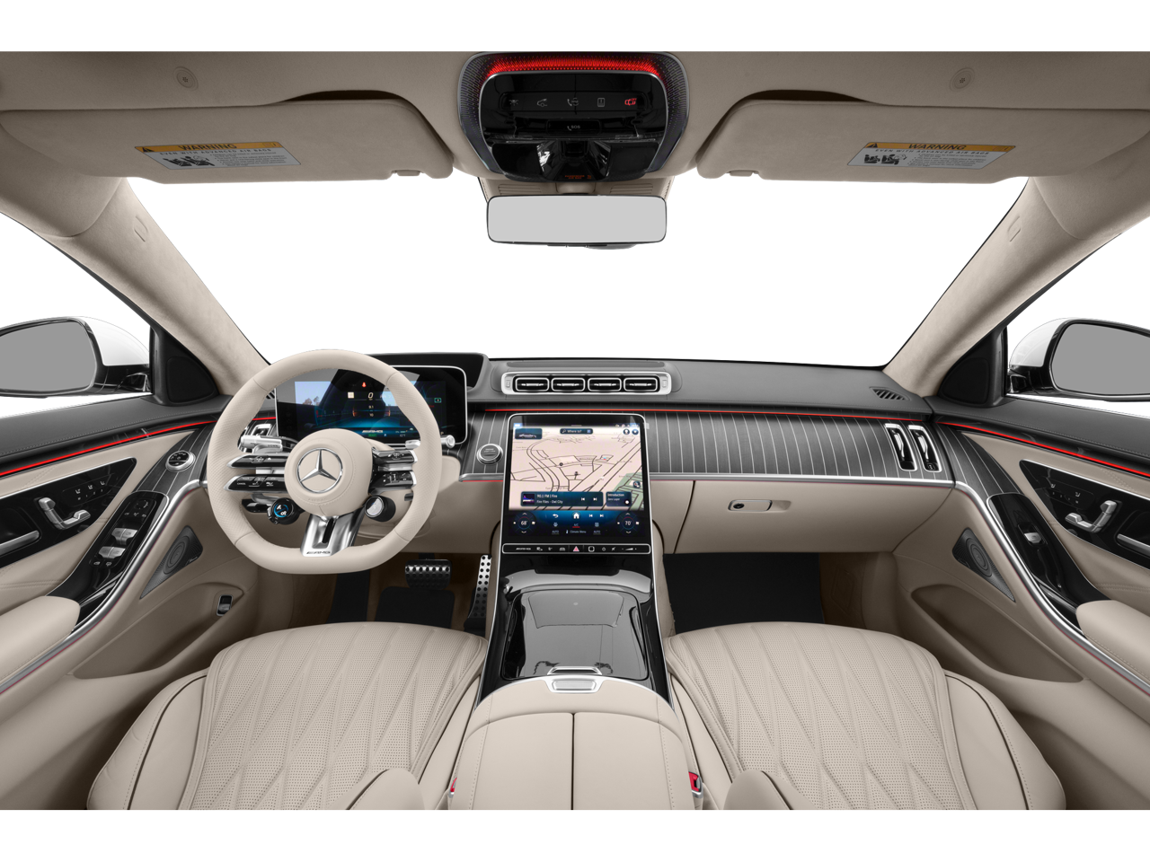 - Radio: MBUX w/Navigation -inc: Burmester 3D surround sound system, sound personalization, 12.8" OLED touchscreen center display, 'Hey Mercedes' voice control, augmented video for navigation, front wireless charging, wireless smartphone integration (Apple CarPlay, Android Auto), 8 USB-C ports (4 front, 4 rear), SiriusXM extended subscription and online music streaming